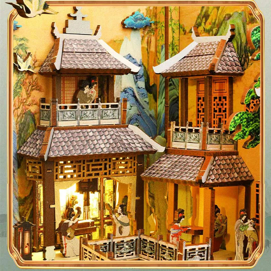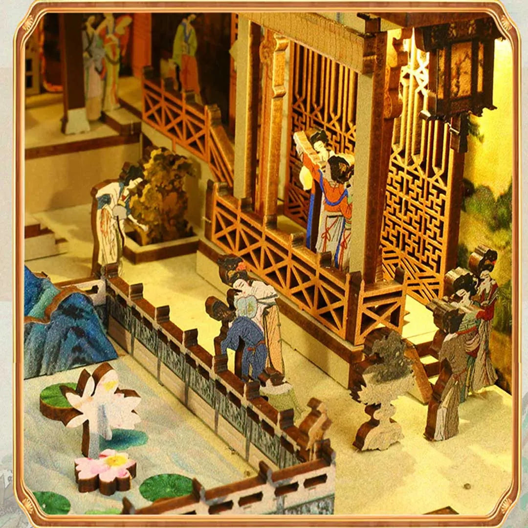 Han Palace: Historical Bookshelf Art Eco-Friendly Wood LED Book Nook